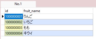 ちなみに、もしidとフルーツ名だけを取得したい場合は、以下の書き方で取得できます。
